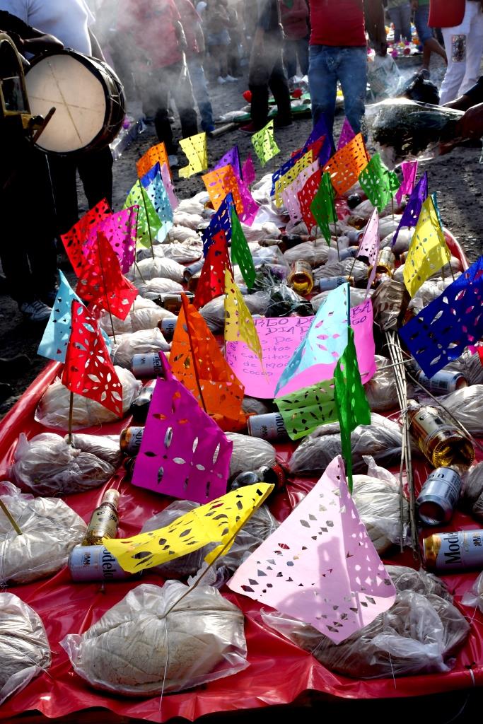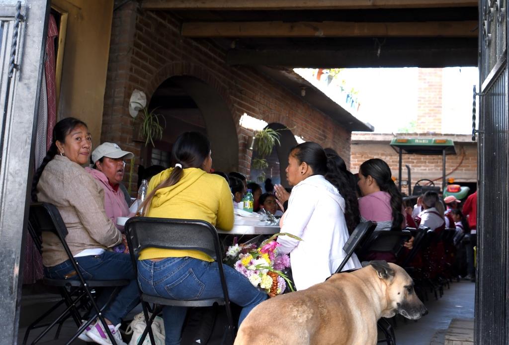 El sábado por la mañana las danzas bailan un rato y luego dan de almorzar, evidentemente almuerzan los músicos y los danzantes, pero todos los presentes están invitados, hayan venido de donde hayan venido, aunque sean muchos… mientras alcance.