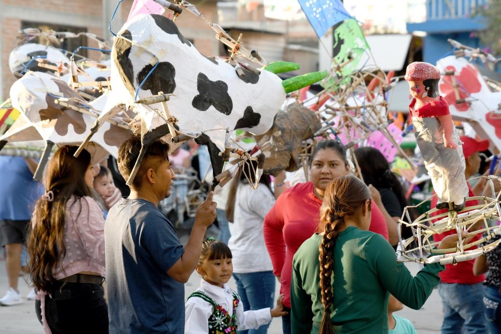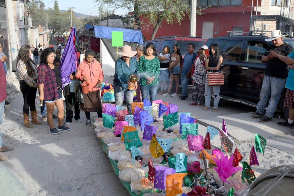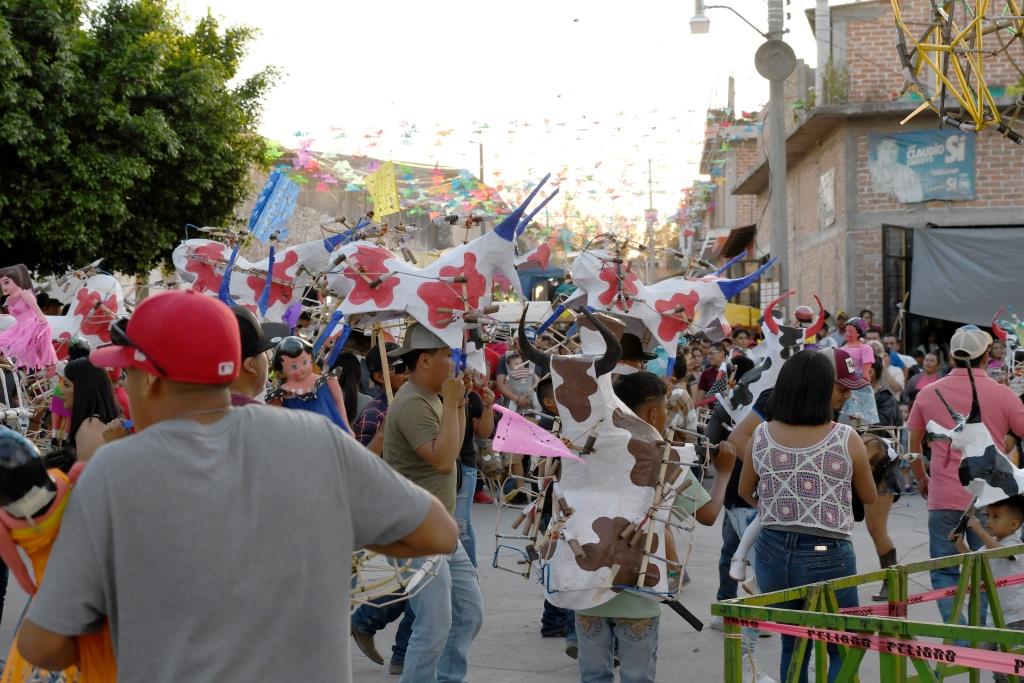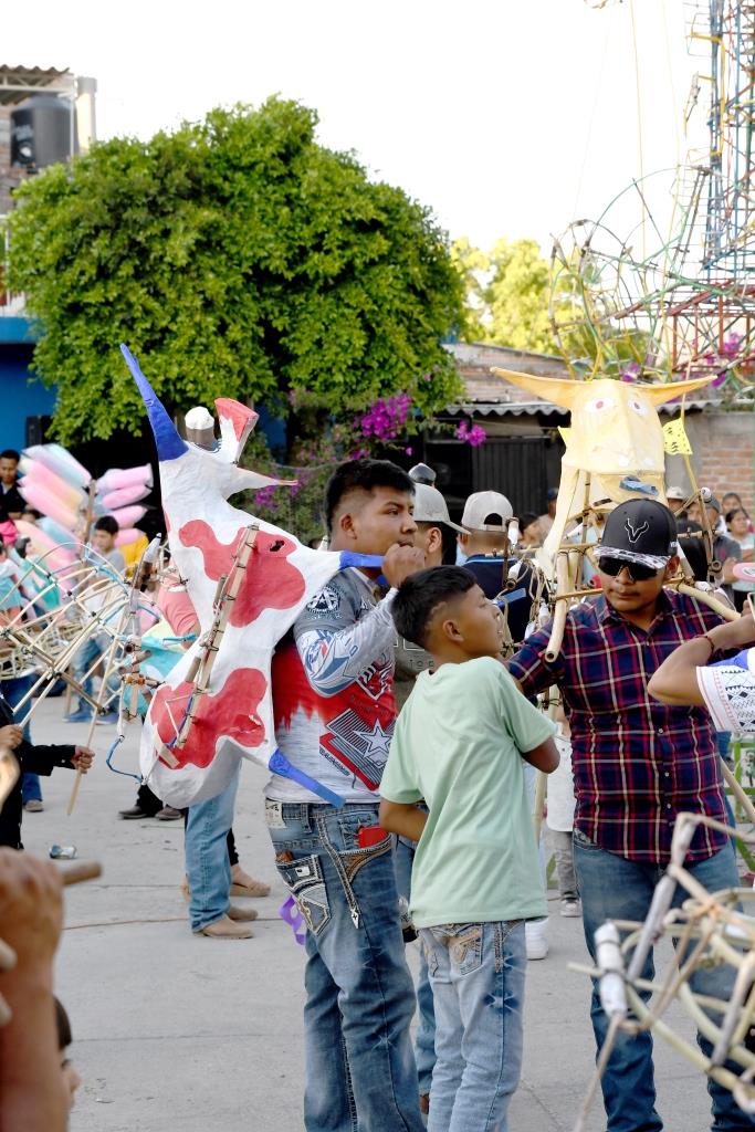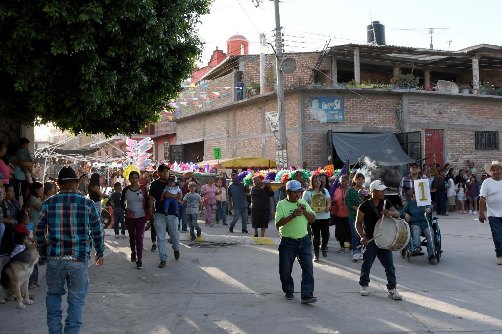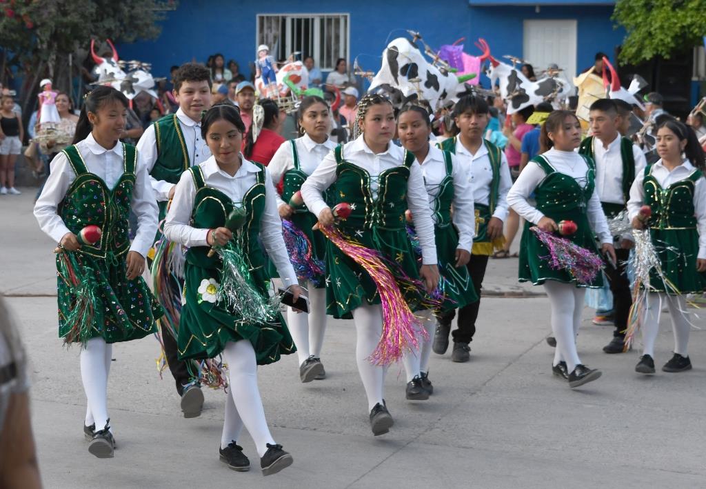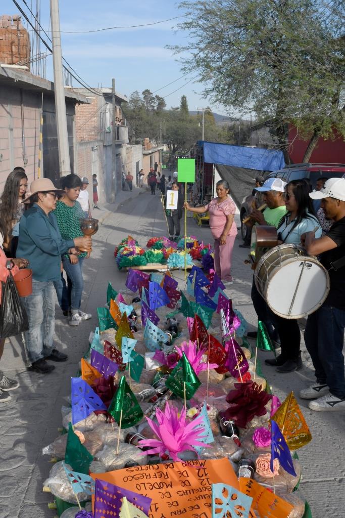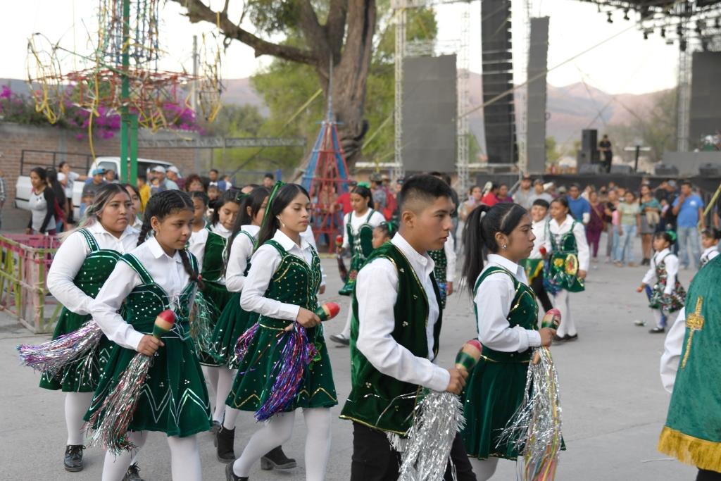 Los danzantes y casi todos los que se integran llevan consigo un ramillete de flores y, si bien no participan todos los integrantes de las danzas si es un buen número de estos quienes realizan el recorrido y, además, van acompañados de los músicos respectivos.