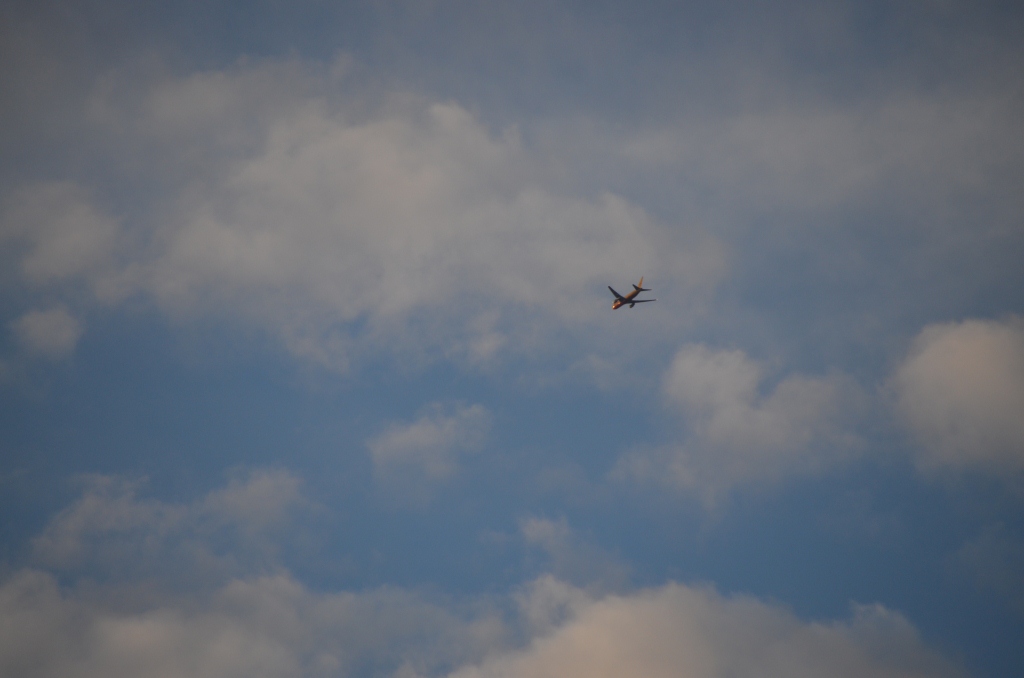 Como se está volviendo una costumbre, las imagenes anteriores y las dos siguiente son del joven José Antonio Carracedo, en medio de los borreguitos de nubes de la imagen de arriba quizá note, amable lector, un pequño punto, la imagen de abajo nos muestra que se trataba de un avión, un Airbus 320 según mis avanzados conocimientos en la materia. Pero el autor de la foto dice que es un 319.