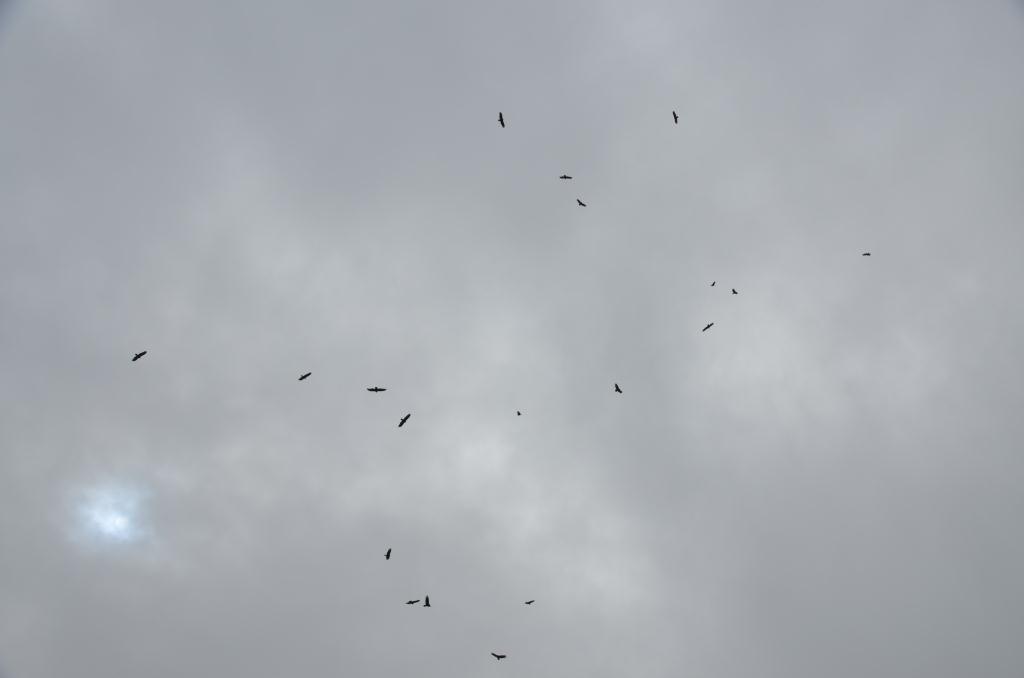 No es que volaran en formación seis Zopilotes Aura, tomé seis fotos y me pareció interesante colocarlas en una sola imagen.