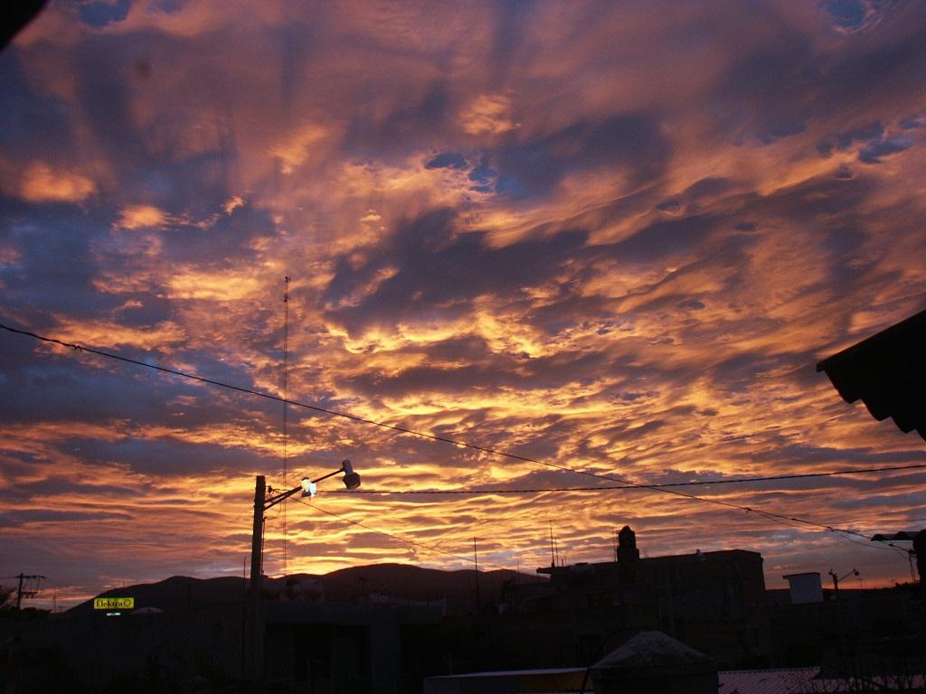La imagen de este atardecer es de la autoría del joven José Antonio Carracedo González, no tiene ninguna modificación ni mejora electrónica, todo es producto de su paciencia y su perseverancia para conjuntar el juego rojizo de las nubes con el paso del zopilote aura. (Intenté convencerlo de que me dejara decir que la foto es mía regalándole un Carlos Quinto Cajetoso y una Pepsi pero no lo conseguí)