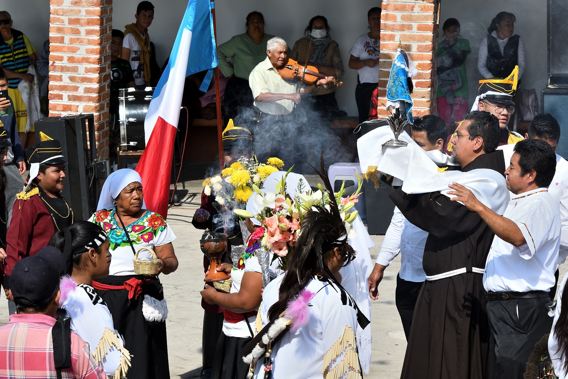 Entramos al atrio alrededor de las seis de la tarde, nos sentamos en esas bancas inclinadas de lo más alto de la rampa y, como si me hubiera estado esperando, comenzó a sonar el aire marcial de la banda de guerra que siempre augura que algo solemne se aproxima, un poco atrás venían un grupo de clérigos y uno de ellos sostenía entre sus manos la pequeña imagen de Nuestra Señora de los Remedios, avanzando por entre el júbilo de todos los presentes; casi al mismo instante en que las campanas repicaban, dos muchachas dejaron caer una lluvia de papelitos azul y blanco desde la torre, conformando un ensamble de imágenes, sonidos y sensaciones llevados al extremo cuando la imagen pasó frente a mis ojos asombrados y mi alborozada emoción. Unos quince minutos después y mientras me reponía de la hermosa escena que, sin haberlo imaginado ni planeado, presencié, las terrazas se llenaron de danzantes y las melodías troqueladas en mi memoria infantil se desenvolvieron, una por una, llevadas ahora por otros danzantes y otros músicos, pero siendo, de algún modo, las mismas danzas que conocí de niño. Ese día permanecí mucho rato en el atrio, mirando desde mis ojos de niño todo aquello y mirándolo a la vez con unos ojos renovados. Regresé a mi casa con un gozo profundo y discreto, seguro de haber redescubierto un olvidado tesoro en el momento en que más lo necesitaba.